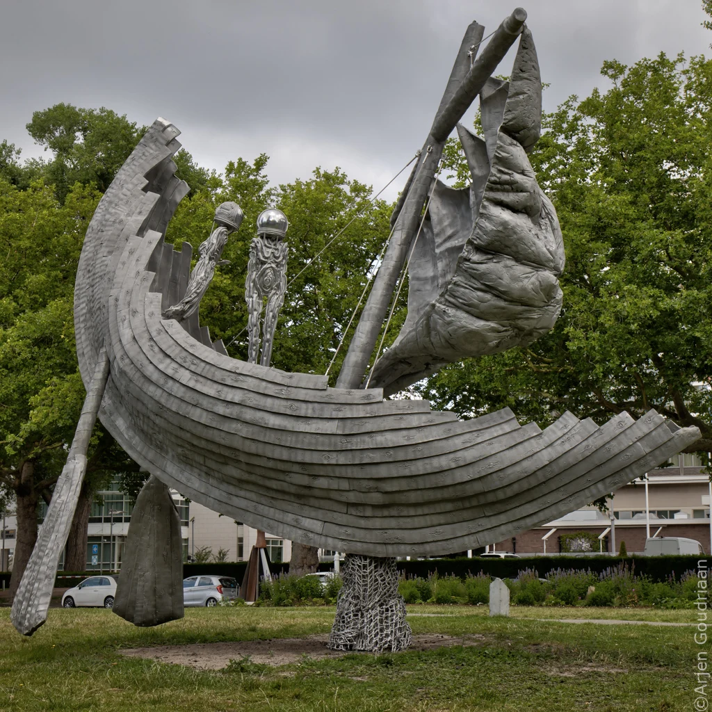 Beelden, Kunst(Klik, of tik op een tegel voor een grotere foto)Groot beeld van soort Vikingschip “Horizons” door Jean-Marie Appriou.Beeld “respect” door Carin Scholten (helft van tweeluik).Uit goed hout gesneden Afrikaans voorouderbeeld (detail).
