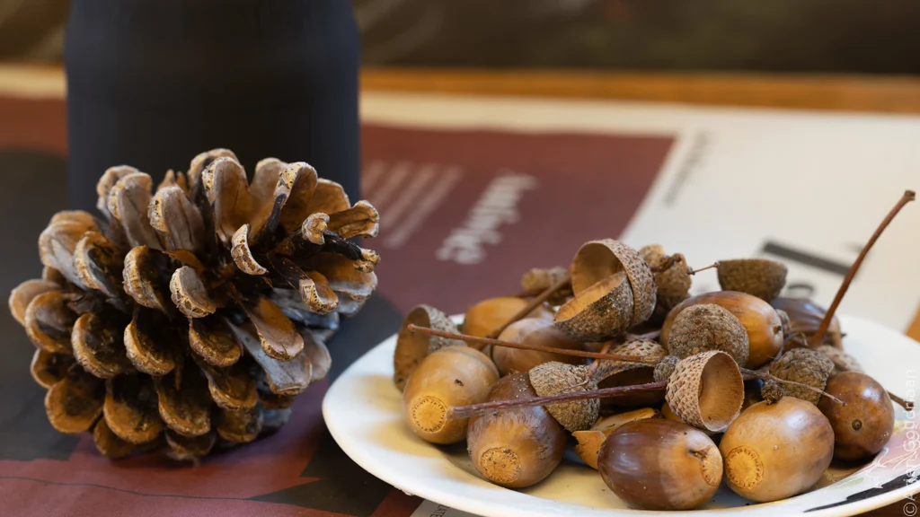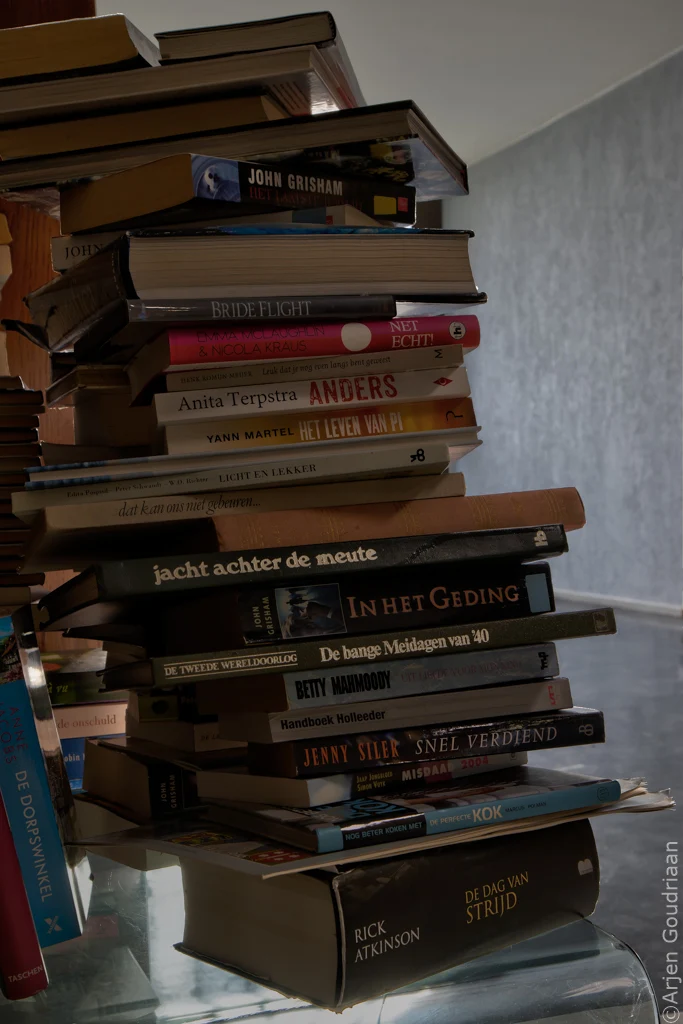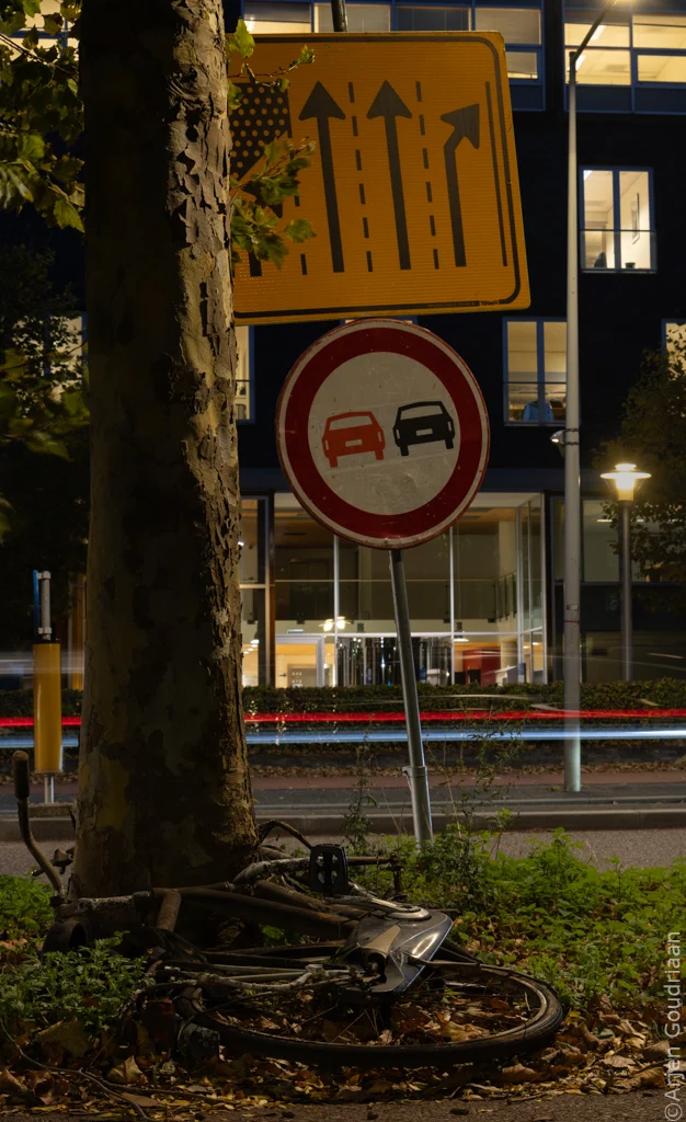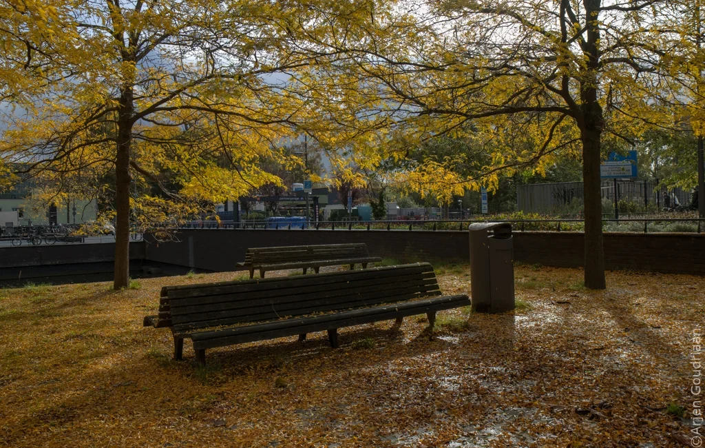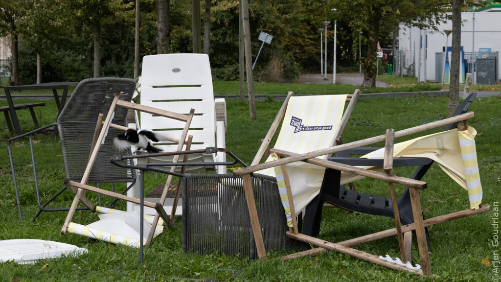 “Kabouter-paddenstoel” in herfstig decor.Bankje in park met sfeervolle geel-rood gekleurde bladeren en eclatant licht.Aantal tuinstoelen, strandstoelen en barkrukken liggen rommelig op de grond op grasveldje bij Zuidas in Amsterdam. Op de middelste staat de tekst “op de Zuidas daar zit je goed”.Herfstig stilleven met dennenappel en schaaltje eikels.Kluwen wol vormen gezellige warboel van draden.Sjoelstenen in de laden van een sjoelbak van dichbij.Zonsopkomst bij Elswoud in Overveen.Roestige, opgeviste fietswrakken liggen bij boom in de berm langs drukke weg, met verkeersborden erboven.Stapel boeken op plexiglazen tafeltje.